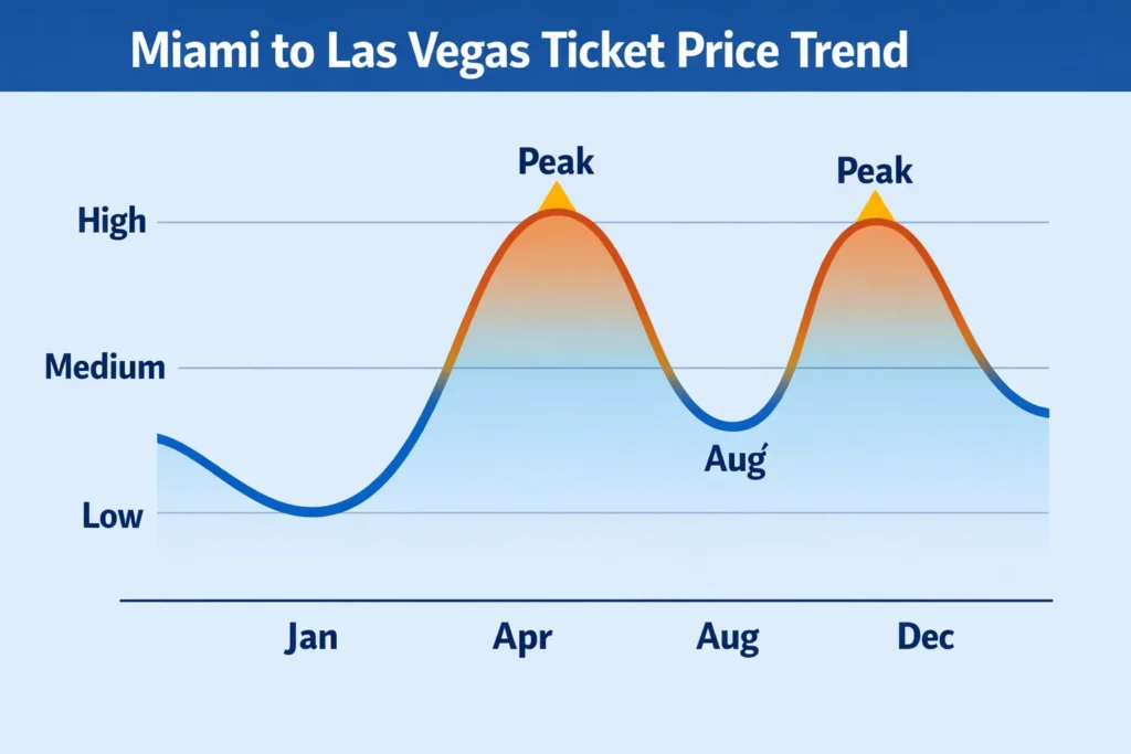 The best time to book Miami to Las Vegas airfare deals is usually during off-peak times, like January, September, and early February. Flights that leave on Tuesdays or Wednesdays are usually cheaper, which helps people find cheap flights from Miami to Vegas.